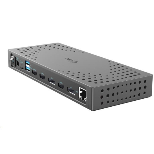 Výkonná profesionální dokovací stanice Gen 2, která podporuje výstup až na tři externí monitory ve vysokém rozlišení až 4K. Dokovací stanici lze použít prakticky se všemi notebooky, protože podporuje připojení ke všem běžným portům: 3.0, USB-C a Thunderbolt“ 3/4 a zároveň podporuje všechny běžné současné operační systémy. Připojení ke třem monitorům však bude možné pouze v případě, že je notebook vybaven portem Thunderbolt“ 3/4 nebo portem USB-C, který podporuje přenos videa (režim USB-C DP Alt). V případě připojení k notebooku s portem USB 3.0 budou podporovány pouze dva monitory.