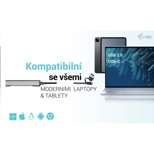 - HUB podporuje všechny běžné současné operační systémy (Windows, macOS, Linux, Android, Chrome OS, iPadOS).