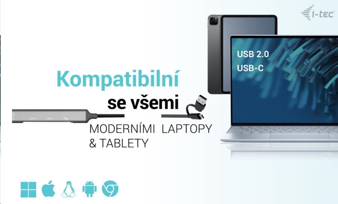 - HUB podporuje všechny běžné současné operační systémy (Windows, macOS, Linux, Android, Chrome OS, iPadOS).