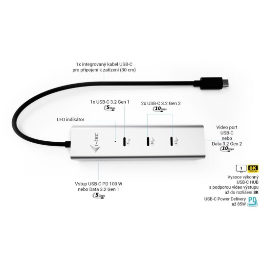i-tec USB-C Charging Metal HUB 5port with USB-C video 8K + Power Delivery 85W