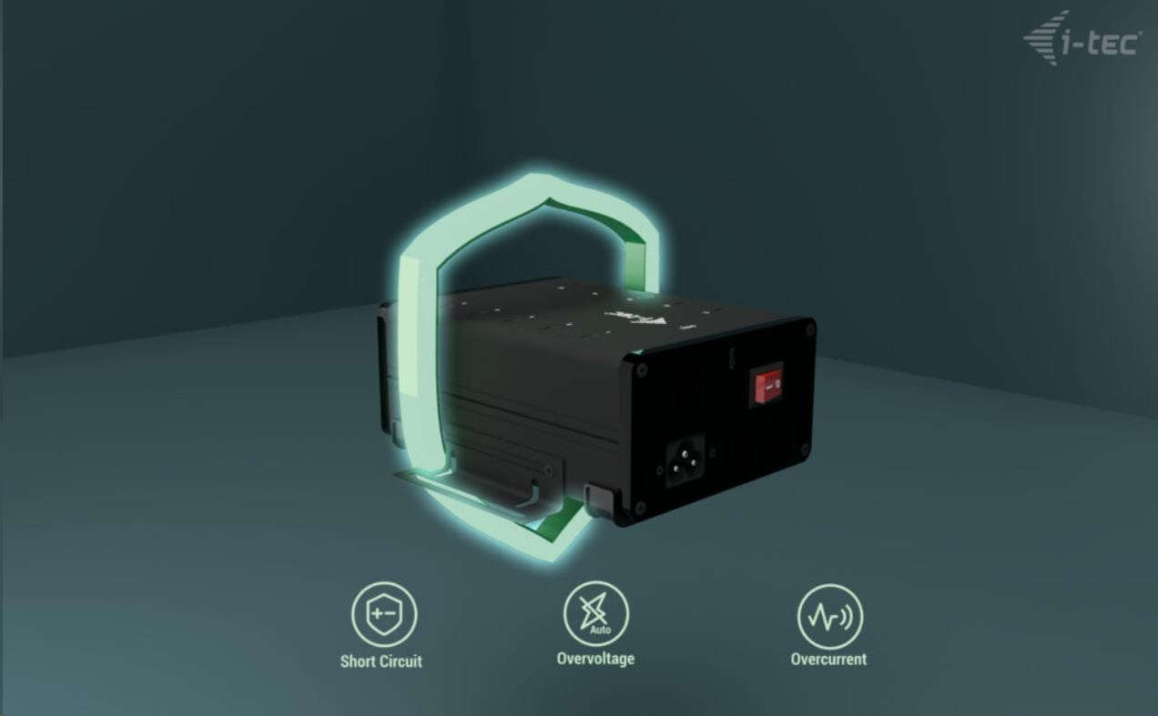 - HUB obsahuje integrovaný napájecí adaptér (180 W)