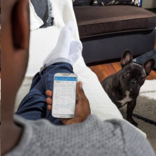Při použití vašeho smartphonu (nebo tabletu) při vážení získáte okamžitě přehled o všech aktuálních údajích. Stačí zapnout Bluetooth a spustit aplikaci MyVitals. Jakmile vstoupíte na váhu, dojde k automatickému přenosu a vyhodnocení dat. Aktuální hmotnost hned vidíte také na obrazovce.