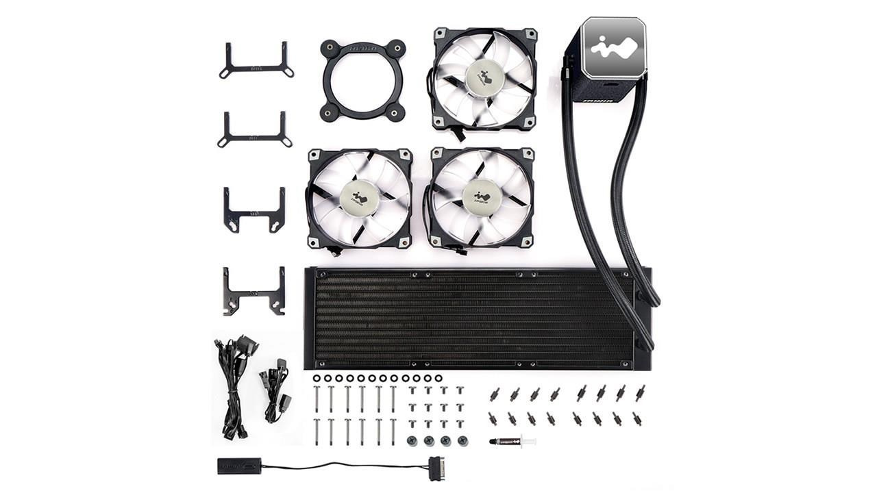 | Package Contents | InWin SR PRO Series 360mm CPU Liquid Cooler x 1 InWin AJF120 Addressable Fan x 3 ARGB One-Click Controller Fan and Radiator Mounting Screws Pack Mounting Kit for CPU Sockets Cable Pack |
