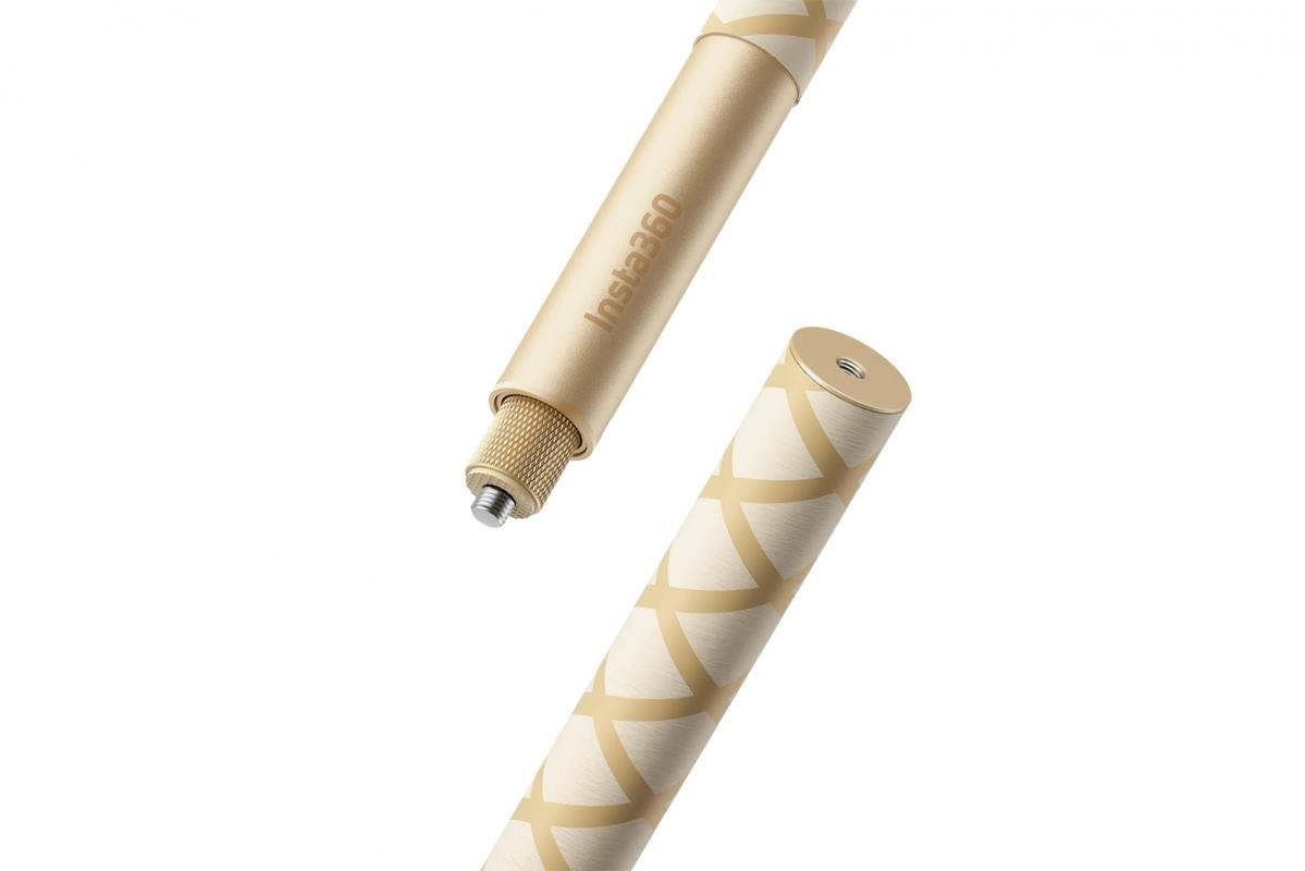Selfie tyč pro akční kamery Insta360. Nastavitelná délka 23,3cm až 114 cm. Materiál: hliník. Způsob uchycení: 1/4" šroub. Tyč je automaticky odstraněna z pořízených záběrů..
