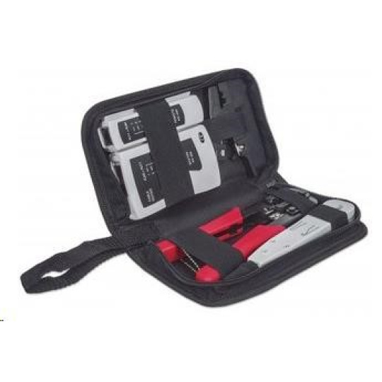 Intellinet 4-Piece Network Tool Kit, sada nářadí: cable tester, krimpovací kleště, LSA narážecí nástroj, stripovač
