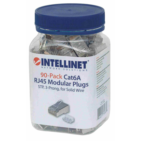 Intellinet konektor RJ45, Cat6A, stíněný STP, 15µ, drát, 90 ks v nádobě