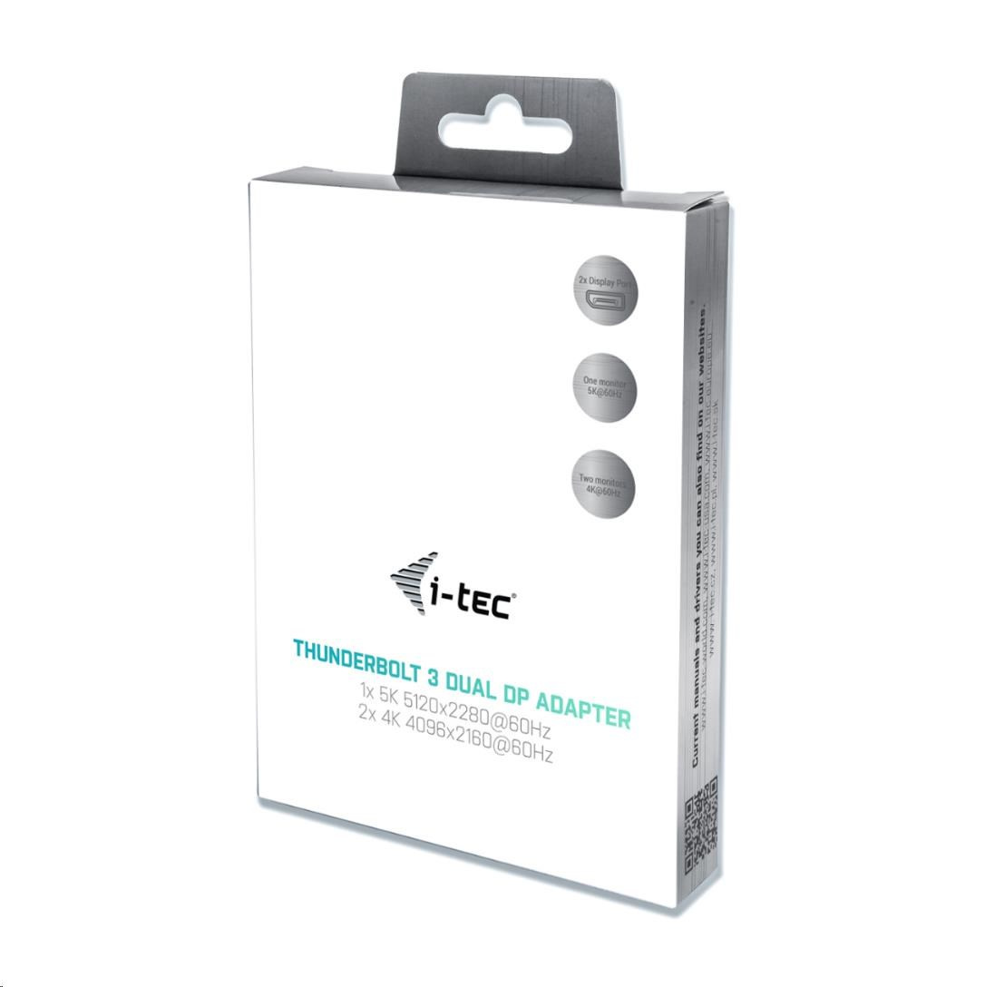 i-tec THUNDERBOLT™ 3 Dual Display Port video adaptér pro Thunderbolt™ 3 macOS a Windows notebooky a tablety, podporuje 1x 5K 60Hz monitor/TV nebo 2x 4K 60Hz monitor/TV