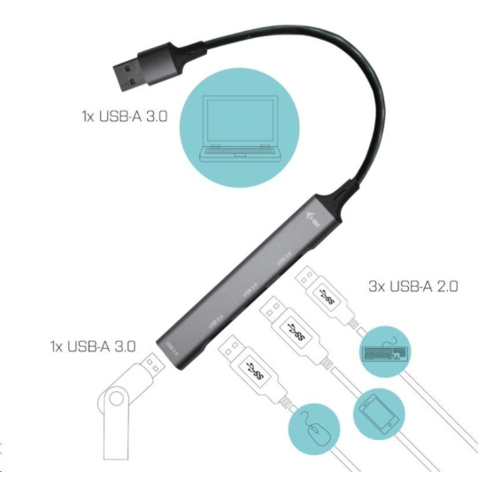 i-tec USB 3.0 Metal HUB 1x USB 3.0 + 3x USB 2.0