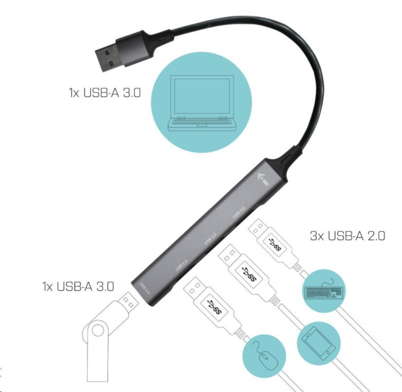 i-tec USB 3.0 Metal HUB 1x USB 3.0 + 3x USB 2.0
