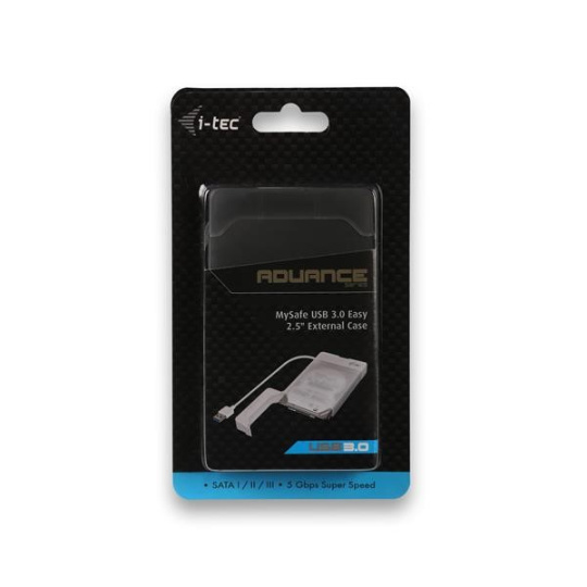 i-tec MySafe USB 3.0 Easy je externí rámeček pro připojení 2.5" SATA disků všech kapacit k vašemu PC, notebooku, TV či jinému multimediálnímu zařízení pomocí USB rozhraní, přes které je zároveň i napájen. Rámeček je rovněž vhodný k přesunu dat z poškozeného notebooku. Připojení přes USB 3.0 nabízí rychlý a snadný přenos dat (až 5 Gbps). Samozřejmostí je zpětná kompatibilita s USB 2.0.