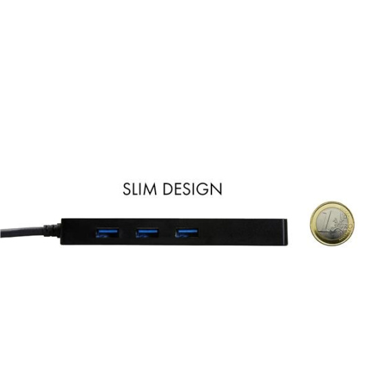 Nabízí tři USB 3.0 porty s funkcí Plug & Play a standardním USB nabíjením – HUB automaticky detekuje, jestli je připojeno zařízení pro USB nabíjení. Rozhraní USB 3.0 je důležité zejména pro datové přenosy z USB 3.0 paměťových karet a flash disků, kde se nejvíce využije jeho vysoká přenosová rychlost. HUB je napájen z USB sběrnice a má vestavěnou přepěťovou ochranu vašeho počítače pro případ zkratu na periferních zařízeních. Samozřejmostí je zpětná kompatibilita s USB 2.0.