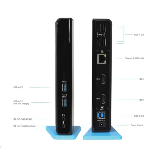 Univerzální dokovací stanice, kterou lze použít prakticky s jakýmkoliv notebookem, neboť je možné ji připojit do libovolného USB portu (USB 3.0, USB-D, Thunderbolt 3, nebo dokonce i do staršího USB 2.0).