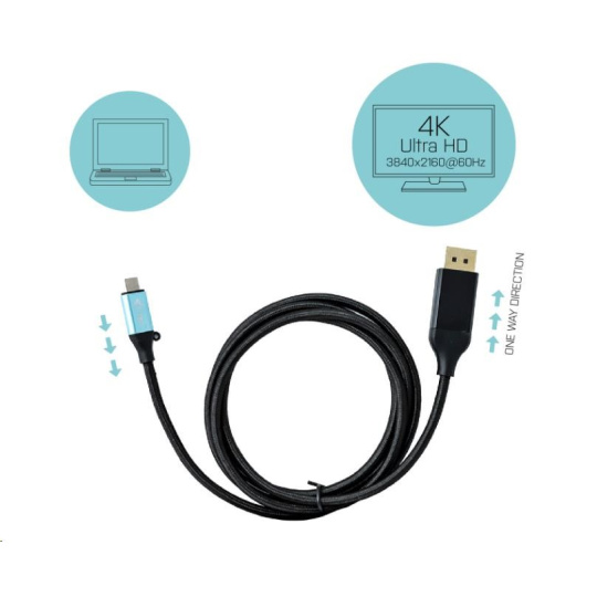 Rozšiřte svou pracovní plochu o externí Display Port monitor prostřednictvím USB-C nebo Thunderbolt 3 portu. Tento kabelový adaptér podporuje přenos 4K Ultra HD rozlišení až 3840 x 2160 pixelů, včetně audio signálu.
