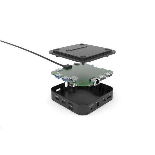 Kancelářská dokovací stanice USB-C, která podporuje až 2x externí monitor v rozlišení 4K. Stanice je kompatibilní s jakýmkoliv notebookem vybaveným portem USB-C nebo Thunderbolt 3. 6x USB port, spolehlivé a rychlé připojení do podnikové sítě díky integrovanému LAN portu a podpora instalace za monitor, to vše z této dokovací stanice dělá ideálního společníka pro profesionály. Samozřejmostí je podpora nabíjení vašeho notebooku či tabletu, a to až 100 W (napájecí adaptér je přiložen).