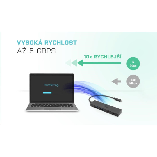 S tímto hubem získáte další 4 další USB: dva standardní USB 3.0, a dva USB-C porty. Připojte si externí klávesnici a myš, přenášejte data nebo filmy z USB flash disku rychlostí až 5 Gbps nebo nabíjejte svá mobilní zařízení nabíjejte (standardní USB rychlostí 0.9A).