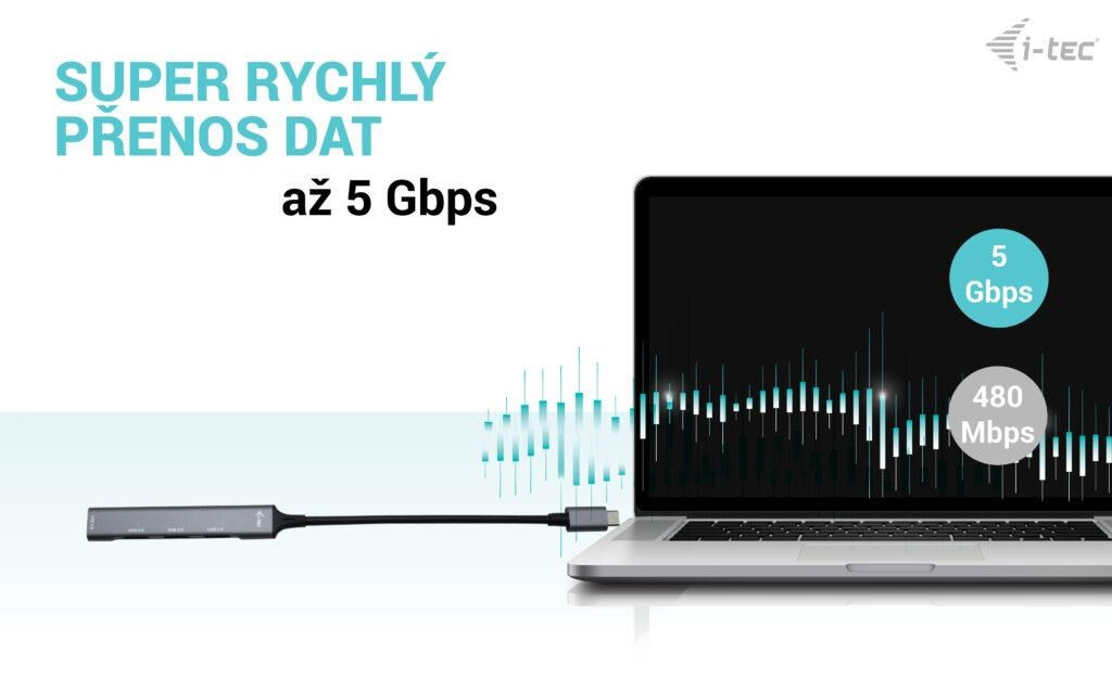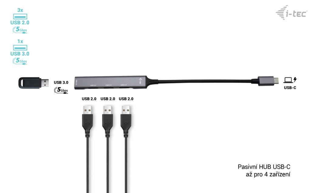 • USB-C pasivní HUB, s možností připojení až 4 zařízení