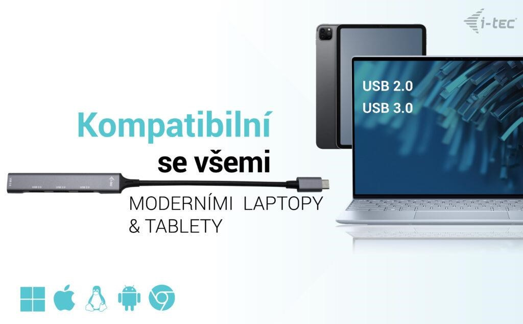 • HUB podporuje všechny běžné současné operační systémy (Windows, macOS, Linux, Android, Chrome OS, iPadOS)