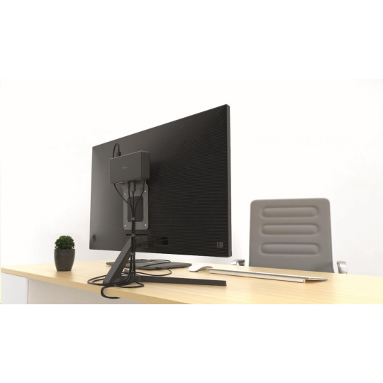Nedílnou součástí moderní kanceláře je komfortní, čistý a efektivní design pracovní plochy. Díky chytrému využití VESA standardu nyní můžete svůj pracovní stůl zorganizovat mnohem lépe, a plochu vašeho pracovního prostředí si účinně zvětšit. Umístěním dokovací stanice (a kabelů) za monitor si zvýšíte nejen komfort, ale zároveň i minimalizujete riziko krádeže.