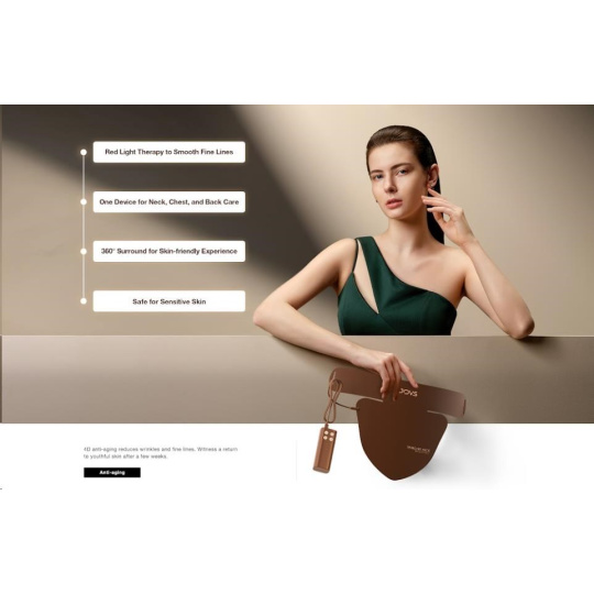 Péče o pleť nekončí u obličeje. Objevte profesionální ošetření pro často opomíjené partie a dopřejte si luxus, který vaše pokožka na krku, v dekoltu a na zádech pocítí i uvidí. Představujeme vám světelnou masku JOVS, inovativní řešení od prémiové značky, která přináší technologie z estetických klinik přímo k vám domů. Rozlučte se s nedokonalostmi a odhalte mladistvější a zářivější pokožku bez nutnosti drahých a časově náročných procedur v salonech.