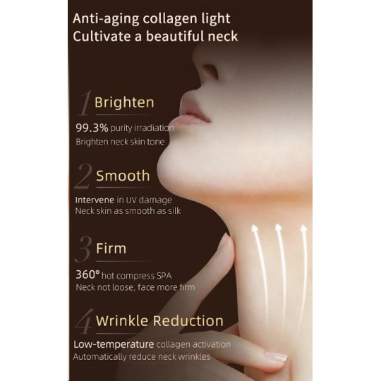 Tato unikátní maska byla navržena tak, aby dokonale pokryla nejen krk, ale i celý hrudník a horní část zad. Klíčový rozdíl oproti běžným maskám spočívá v cíleném, konturovaném designu, díky kterému těsně obepíná a ošetřuje oblast krku, dekoltu a horní části zad. Využívá klinicky ověřenou sílu vysoce čistého červeného světla o vlnové délce 660nm, které je standardem v profesionální dermatologické péči. Světlo proniká hluboko do pokožky, kde stimuluje produkci kolagenu, zrychluje regeneraci buněk a pomáhá napravovat poškození způsobené UV zářením. Výsledkem je viditelně pevnější, hladší a barevně sjednocená pokožka.