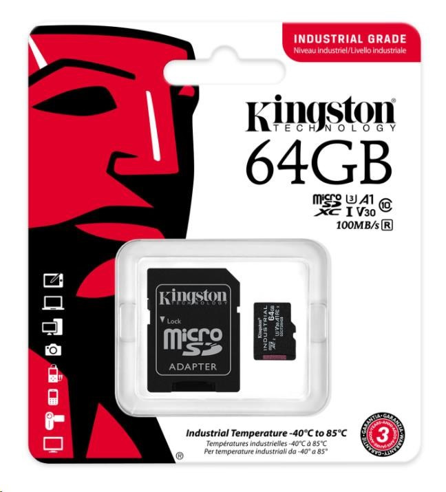 Kingston MicroSDXC karta 64GB microSDXC Industrial C10 A1 pSLC Card + SD Adapter