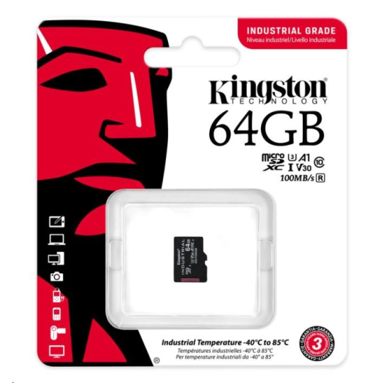 Kingston MicroSDXC karta 64GB microSDXC Industrial C10 A1 pSLC Card Single Pack