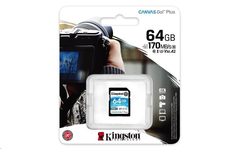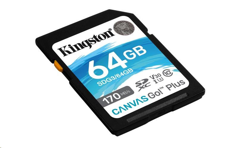 Kingston SDXC karta 64GB Canvas Go! Plus, R:170/W:90MB/s, Class 10, UHS-I, U3, V30