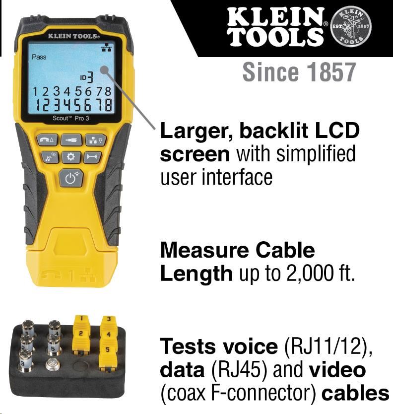 Stránky produktu: https://www.kleintools.com/catalog/cable-length-measurement/cable-tester-kit-scout-pro-3-tester-remotes-adapter-battery User Manual