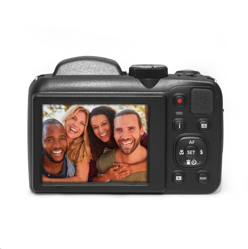 Kodak AZ255 z řady Astro Zoom je vhodný pro všechny, kteří chtějí od fotoaparátu kompaktní rozměry, a přesto kvalitní fotografie. S výkonným 16MPix snímačem BSI CMOS, českým menu, 25× optickým zoomem a 24mm širokoúhlým objektivem vás ohromí krása fotografií, které můžete vytvářet ihned po vybalení z krabice. Tvarování těla fotoaparátu skvěle padne do ruky, takže vás neomrzí ani při celodenním nošení.
