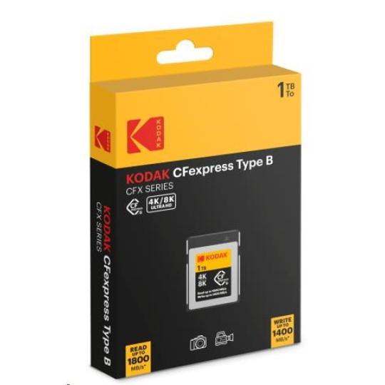 Paměťové karty KODAK CFexpress Type-B jsou určeny pro profesionální i náročné amatérské fotografy a kameramany, kteří vyžadují maximální rychlost a spolehlivost při práci s obrazem ve vysokém rozlišení. Jsou ideální pro sériové snímání vysokou rychlostí i pro záznam videa ve Full HD, 3D, 4K a dokonce 8K UHD kvalitě. Díky robustní konstrukci zvládají i náročné profesionální nasazení.