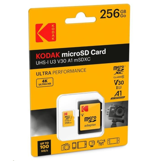 Kodak paměťová micro SD karta 256GB UHS-I U3 V30 Ultra + adaptér