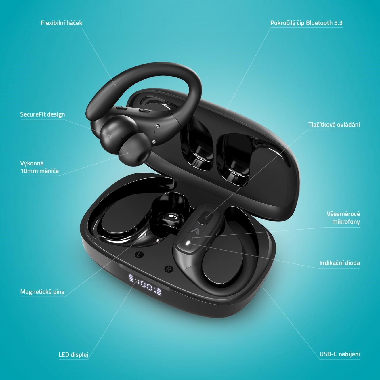 Jsou chvíle, kdy se pohyb stane přirozeným a hlava se přestane ptát. Běžíš, cestuješ nebo jen odpočíváš a všechno do sebe zapadá. V takových okamžicích nechceš nic řešit, jen cítit, že všechno drží pevně na svém místě. Sluchátka s ergonomickým tvarem kolem uší kopírují každý tvůj krok, ať už sprintuješ po asfaltu nebo kráčíš lesní cestou. A protože váží pouhých osm gramů, sotva je vnímáš. Ani déšť nebo pot tě nezastaví, protože IPX4 odolnost tě podrží i v těch nejnáročnějších chvílích. A když potřebuješ změnit tempo, fyzická tlačítka reagují okamžitě a dávají ti jistotu, že máš hudbu i hovory vždy pod kontrolou.