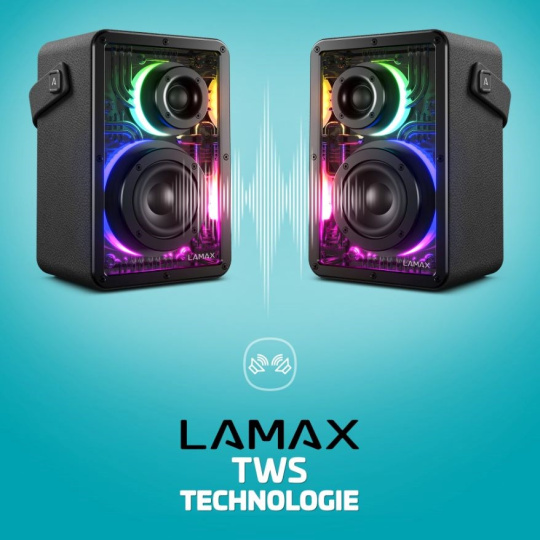 Rozjeď party, na kterou jen tak nikdo nezapomene nebo si užívej poslech muziky i podcastů, jako kdyby byl interpret s tebou v místnosti. Jde to snadno, na scénu totiž přichází LAMAX CyberWave1, party reproduktor se 4 nastavitelnými Cyber LED efekty, který všechny naprosto uchvátí. Jeho tělo s dvoupásmovými reproduktory duní výkonem až 50 W a BeatBass® technologie tě úplně pohltí, tak parádní zvuk poskytuje. Reprák podporuje širokou škálu formátů i připojení, parádně až na 15 metrů funguje jeho moderní Bluetooth 5.3, který ho automaticky spáruje s různými zařízeními. Party se často protáhnou, ale to nevadí, protože baterie repráku vydrží až 20 hodin, pak ho jen stačí dobít přes USB-C a jede se dál. Tenhle reprák je velký fešák vyvedený v mobilním Cyber designu s madlem pro snadné přenášení. Jednoduchý a intuitivní je i jeho ovládání. Užívej si večírky klidně i venku nebo u bazénu, nějaká voda repráku neublíží. Je voděodolný s ochranou IPX5.