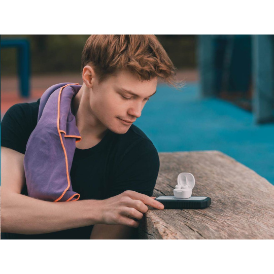 Dots2 s tebou zvládnou každý den – ať v kanclu nebo za městem. Pouzdro vydrží i tvrdší podmínky a díky odolnosti proti potu se o sluchátka nemusíš bát ani při sportu. Navíc kdykoliv tě nahání kámoši nebo šéf, hovor si jednoduše pustíš do špuntů a ruce ti zůstanou volný. S kvalitním mikrofonem tě druhá strana uslyší naprosto zřetelně a telefon už nebudeš muset mít nalepený u ucha – a na to se hodně rychle zvyká! Zvlášť když ti pošleme 3 velikosti špuntů, takže si Dots2 dokonale přizpůsobíš. Přes sluchátka můžeš aktivovat i hlasového asistenta ve smartphonu.