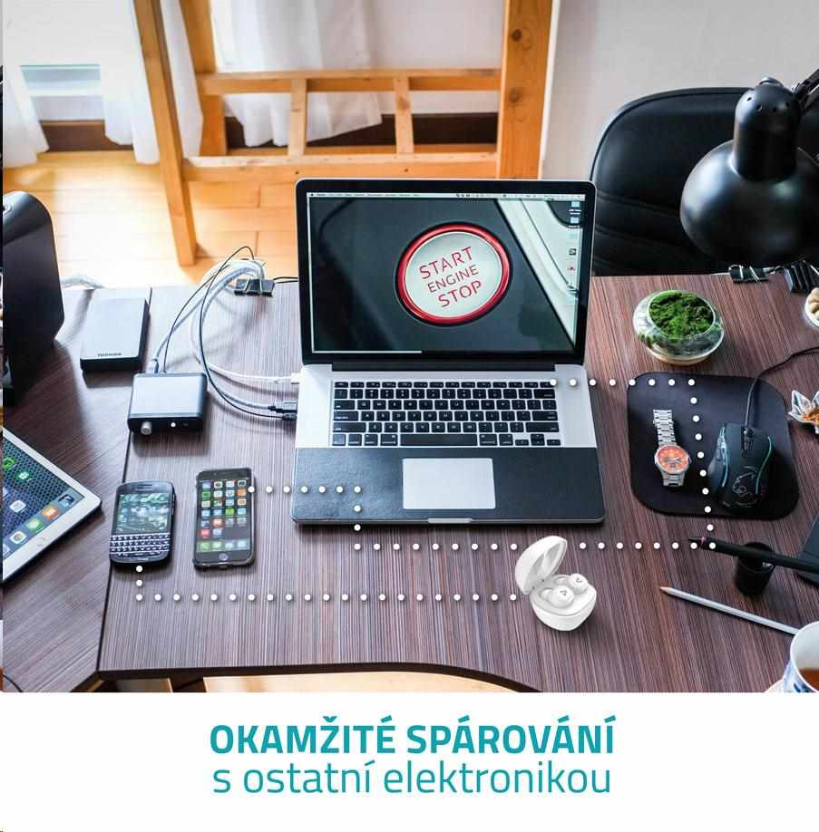 Jakmile špunty vyndáš z pouzdra, začnou hledat tvůj zdroj (telefon, tablet, počítač). Než je dáš do uší, už jsou ready na tvůj playlist.