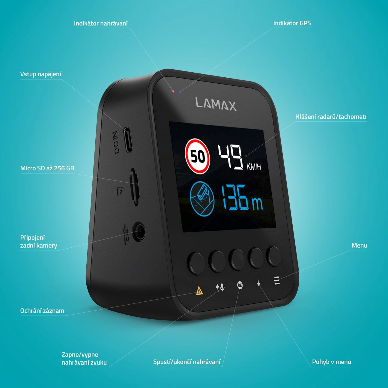 Brázdi silnice s parťákem, který ti kryje záda. Ať už jezdíš soukromě nebo jako profesionální řidič, nikdy nevíš, co se může stát. LAMAX F10 GPS 4K pořídí špičkové záběry v reálném 4K nebo extrémně plynulé ve 2.5K, přidej k tomu funkci GPS, která zaznamená souřadnice i další údaje, a vyjde ti naprosto dokonalý důkaz pro policii nebo pojišťovnu. Kamera tě taky upozorní, kde se ukrývají radary. Jasně, že jezdíš podle předpisů, ale co kdyby. Nenápadná kamera je naprosto spolehlivá a superkondenzátor zaručuje její dlouhou životnost. Pomocí 5GHz Wi-Fi stáhneš záběry bleskovou rychlostí přes intuitivní aplikaci. Přední kamera je základ, ale můžeš si dokoupit třeba i zadní nebo vnitřní IR kameru pro větší přehled. Kamera nahrává automaticky ve smyčce a s nastavitelnou délkou záznamu, poskytuje i kvalitní noční záběry. Pokud dojde k nárazu, G-Senzor uzamkne záběr pro případ potřeby. Ochranu souborů jde aktivovat i ručně. Paměťová karta pojme až 256 GB a kodek H.265 zajistí, aby uložené soubory nezabíraly tolik místa. Mít ve videu zvuk je super, ale stačí přidržet tlačítko a mikrofon vypneš. Napájení kamery probíhá přes USB-C konektor a napájecí adaptér disponuje nejen portem pro kameru, ale také druhým s podporou fast-charge pro dobití mobilu.