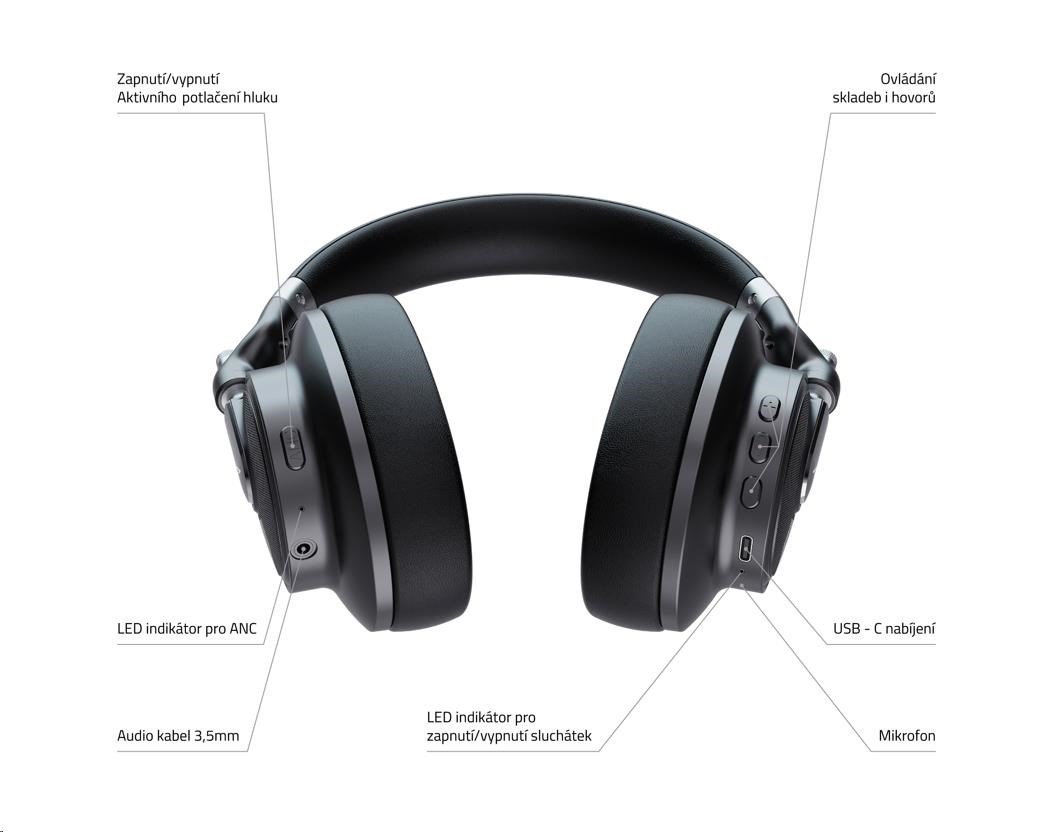 LAMAX HighComfort ANC náhlavní sluchátka s funkcí potlačení hluku - Poškozený obal (Komplet)