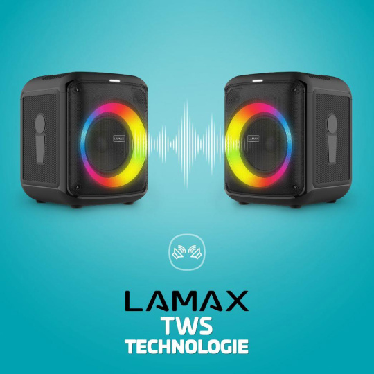 Nezáleží na tom, jestli chystáš oslavičku, chceš sledovat film, jdeš si zacvičit nebo jen poslechnout podcast, LAMAX PartyKing1 Play tě svým zvukem o výkonu 80 W naprosto odzbrojí. Kdyby to na večírek nestačilo, připojíš díky funkci TWS (True Wireless Stereo) další reprák a zdvojnásobíš výkon. Žádné zpoždění, jen čistý a vyrovnaný zvuk podpořený technologií BeatBass®, která dodá koncertní rozměr a přímo tě vtáhne do každýho songu. Tu správnou atmosféru ještě dotvoří 9 nastavitelných LED efektů.