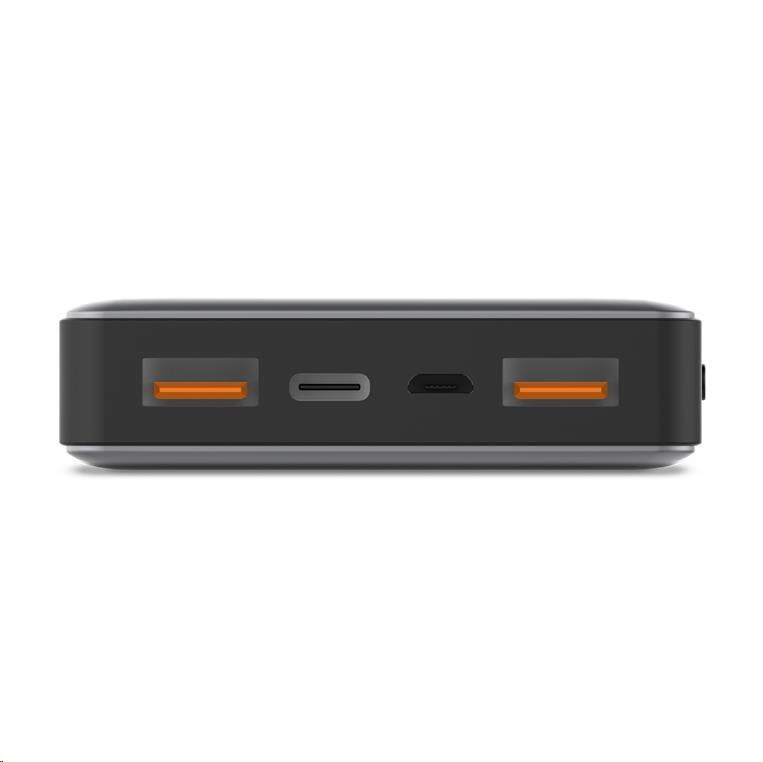 •2× USB QC3.0 výstup + USB-C konektor pro vstup/výstup (input/output)