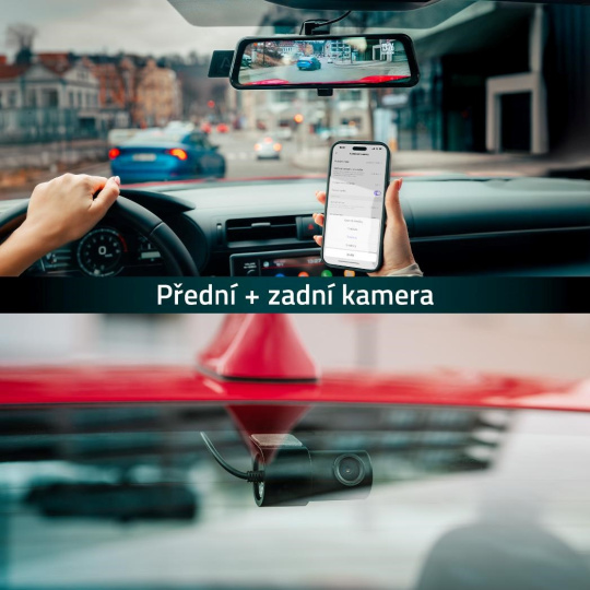 Autokameru lze spárovat s mobilní aplikací a jejím prostřednictvím zařízení ovládat a spravovat. Zároveň si díky rychlé Wi-Fi jde záznamy jednoduše stáhnout do mobilu.