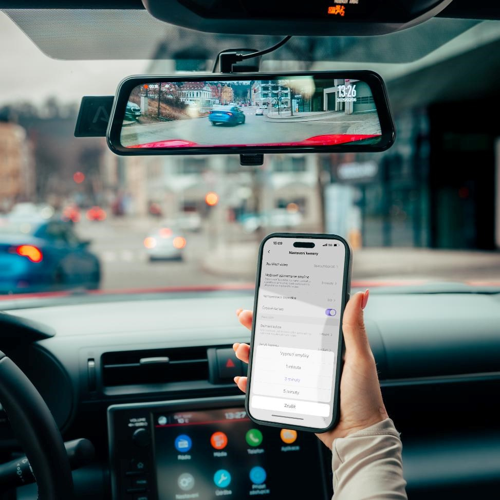 Autokameru lze spárovat s mobilní aplikací a jejím prostřednictvím zařízení ovládat a spravovat. Zároveň si díky rychlé Wi-Fi jde záznamy jednoduše stáhnout do mobilu.