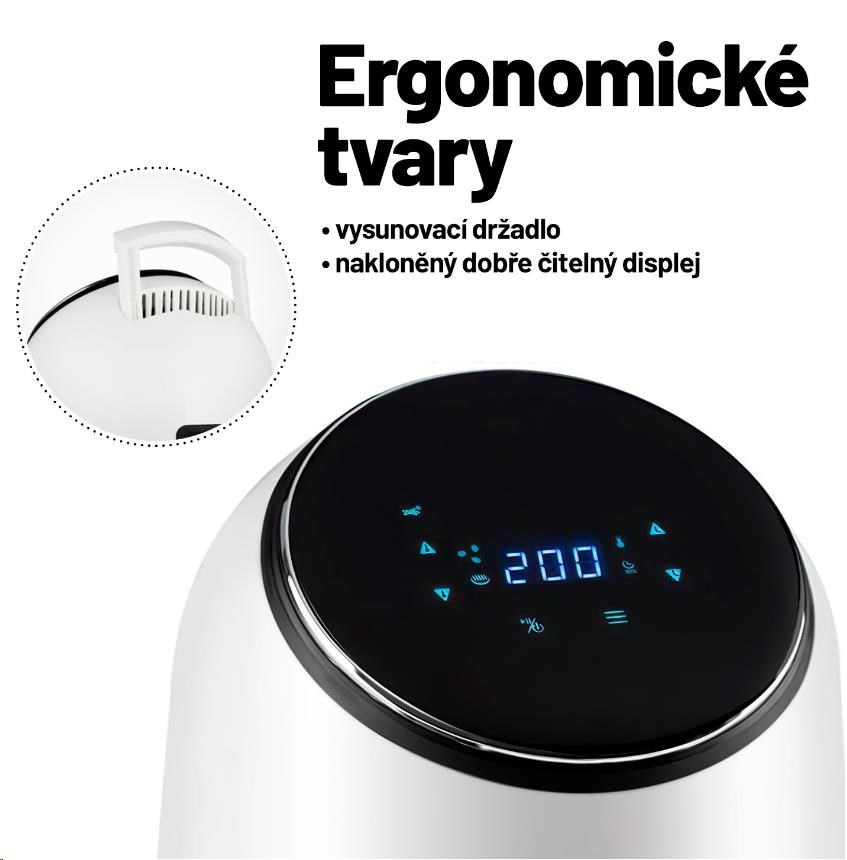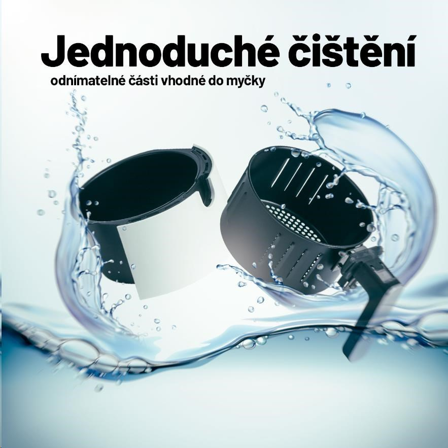 Fritéza se velmi snadno ovládá díky přehlednému dotykovému displeji a hlavní části je možné mýt v myčce nádobí. Potěší vás i vkusný minimalistický design.
