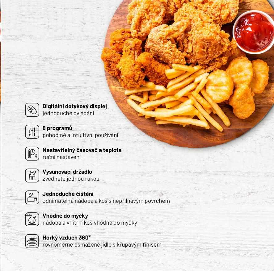 Smažte s čistým svědomímVíte, co většinu z nás napadne jako první, když se řekne smažené jídlo? Dieta. Bývá totiž téměř výhradně nezdravé. Pokud ale přidáte do této rovnice horkovzdušnou fritézu Lauben, můžete si na svých oblíbených křupavých pokrmech pochutnat s čistým svědomím.