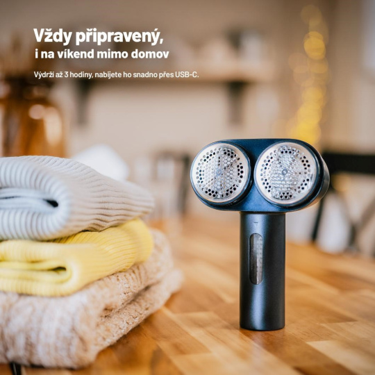 Nemusíte se omezovat. Díky dlouhé výdrži baterie můžete upravit celou skříň bez přerušení. Ať už pečujete o svůj šatník doma, nebo balíte kufr na cesty, Lauben Lint Remover to zvládne. Baterie je zpět na 100 % už za tři hodiny, takže odžmolkovač bude připraven kdykoliv, když ho budete potřebovat – žádné zbytečné prodlevy. To vám umožní univerzální USB-C konektor, díky kterému můžete nabíjet odkudkoliv – z powerbanky, notebooku i adaptéru. Bez speciálních kabelů, bez starostí.