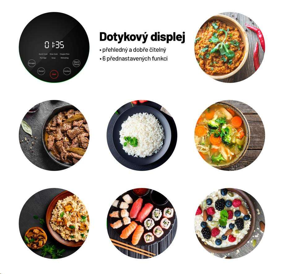 K perfektně uvařené rýži, která je vláčná, a tak akorát na skus, často vede trnitá cesta. S rýžovarem Lauben připravíte jakýkoli druh rýže přesně al dente, stisknutím jednoho tlačítka. Rýží to ale jen začíná. Rýžovar si díky 6 chytrým funkcím poradí i s jinými surovinami. Během několika minut připravíte lahodné polévky, nadýchanou ovesnou kaši nebo luštěniny bohaté na bílkoviny. Samozřejmostí je funkce opětovného ohřevu. Chcete si vychutnat dokonale připravené, zdravé a chutné jídlo? Stačí si na displeji zvolit požadovaný režim a počkat si na bezchybný výsledek.