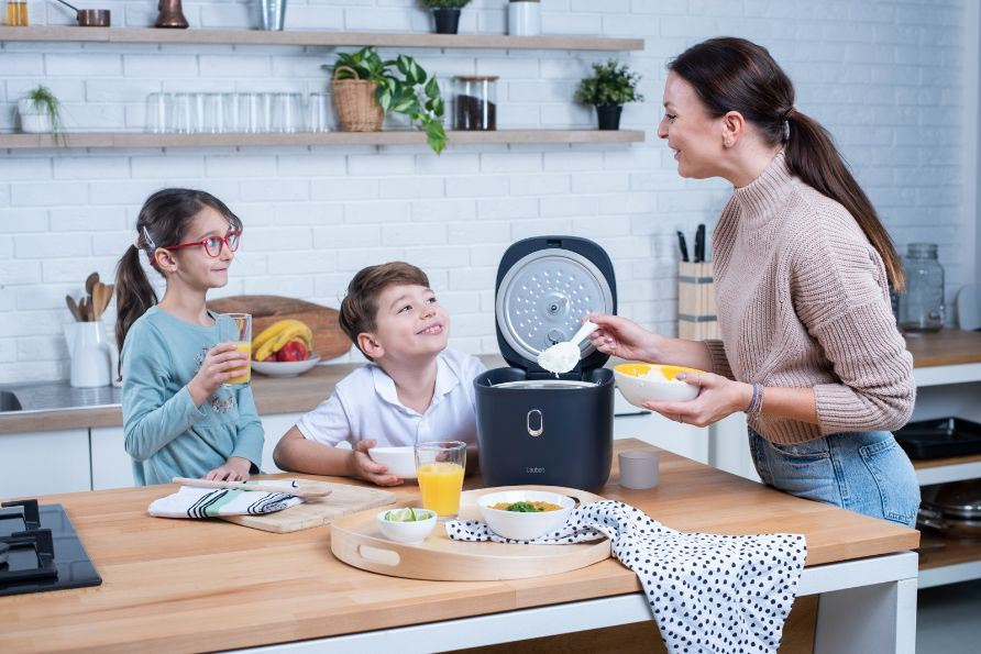 Designově vyladěný Lauben Low Sugar Rice Cooker 3000AT představuje ideální řešení pro velkou rodinu. Jídla připravíte s minimem tuku a nepřipálí se. Jeho 3l nádoba s prémiovým nepřilnavým keramickým povrchem se snadno udržuje, stačí ji vložit do myčky. Ovládání rýžovaru je velmi jednoduché prostřednictvím digitálního dotykového displeje. Pro zajištění bezpečnosti je přístroj vybaven ochranou proti přetečení díky mikrotlaku a technologií Cool Touch zajišťující, že se o vnější plášť nikdo nepopálí.
