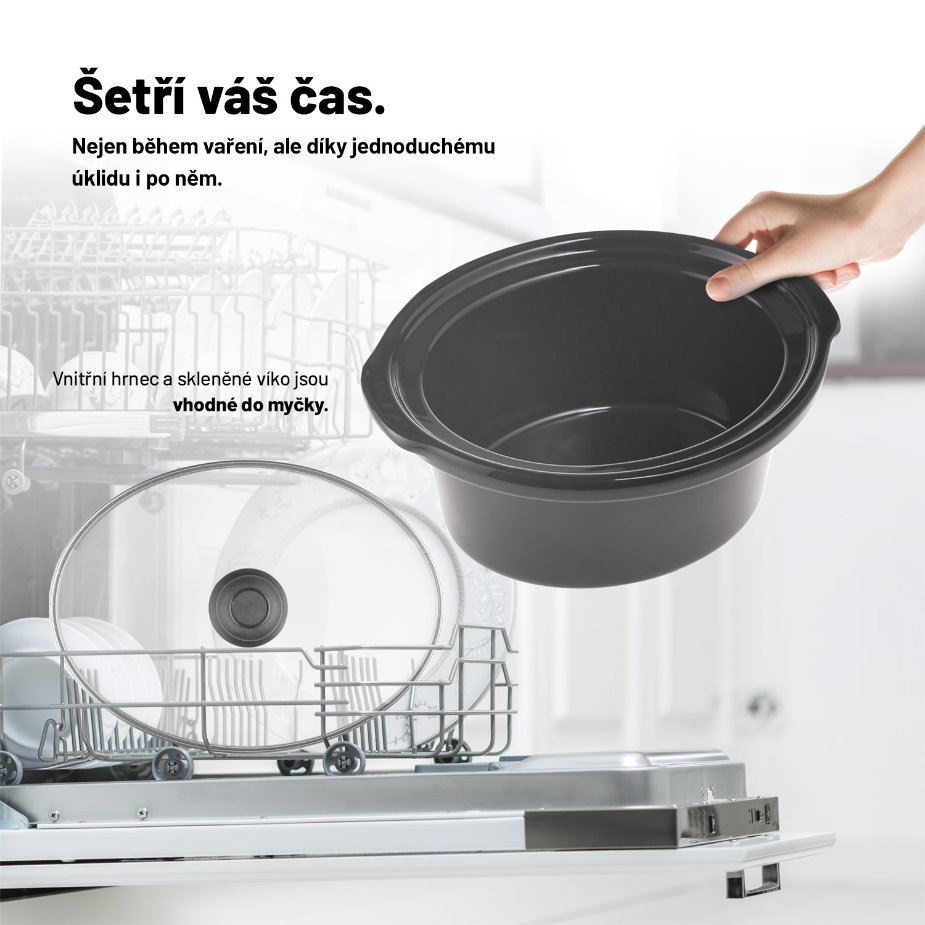 Vnitřní nádobu i poklici lze bez problému mýt v myčce nádobí.