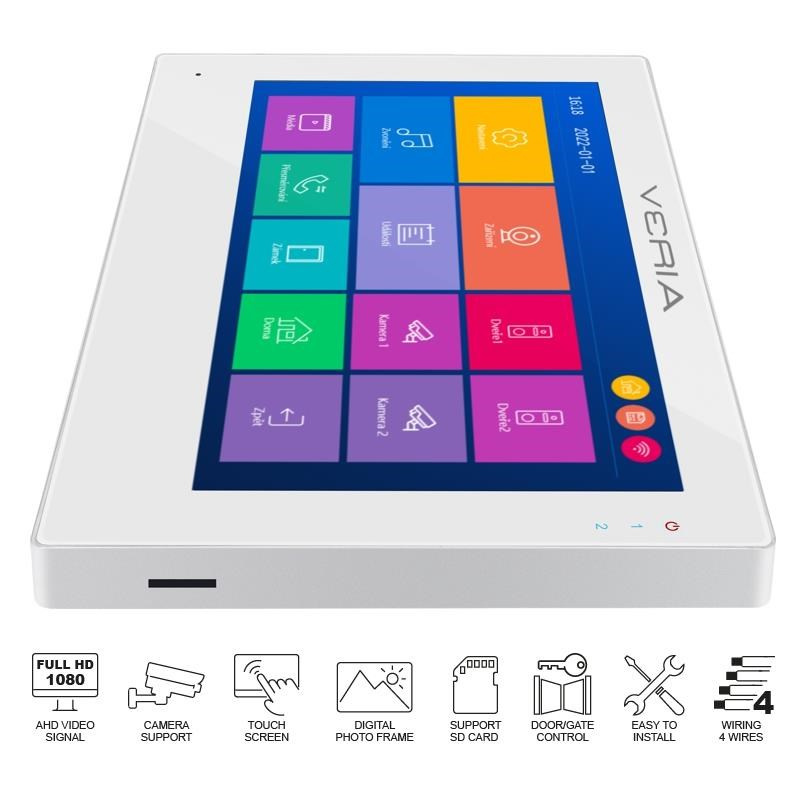 Monitor VERIA 3001-W je plně dotykový barevný LCD panel a nabízí uživatelsky snadné ovládání a nastavování. Umožňuje měnit vzhled menu na styly android nebo windows, v klidovém režimu může znázorňovat hodiny, nebo zobrazovat snímky uložené na SD kartě a zpříjemnit vám tak čas vzpomínkami.