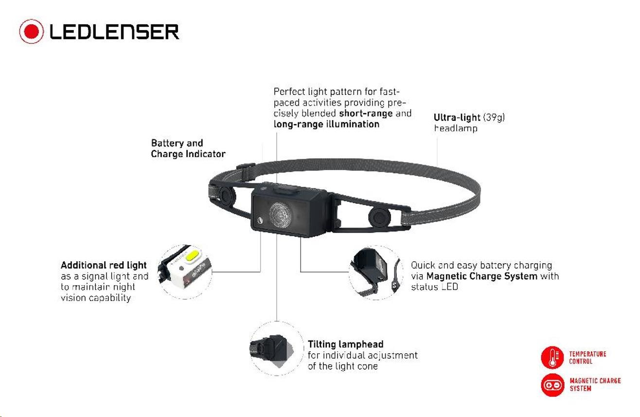 Moderní vzhled, naklápěcí hlavice, dodatečné červené světlo a praktický magnetický systém nabíjení – to vše nabízí moderní běžecká čelovka LEDLENSER NEO1R.