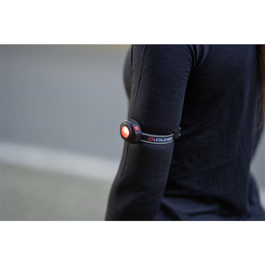 - Elastický reflexní pásek a kovová spona pro rychlé a flexibilní připevnění, např. na horní části paže nebo batohu